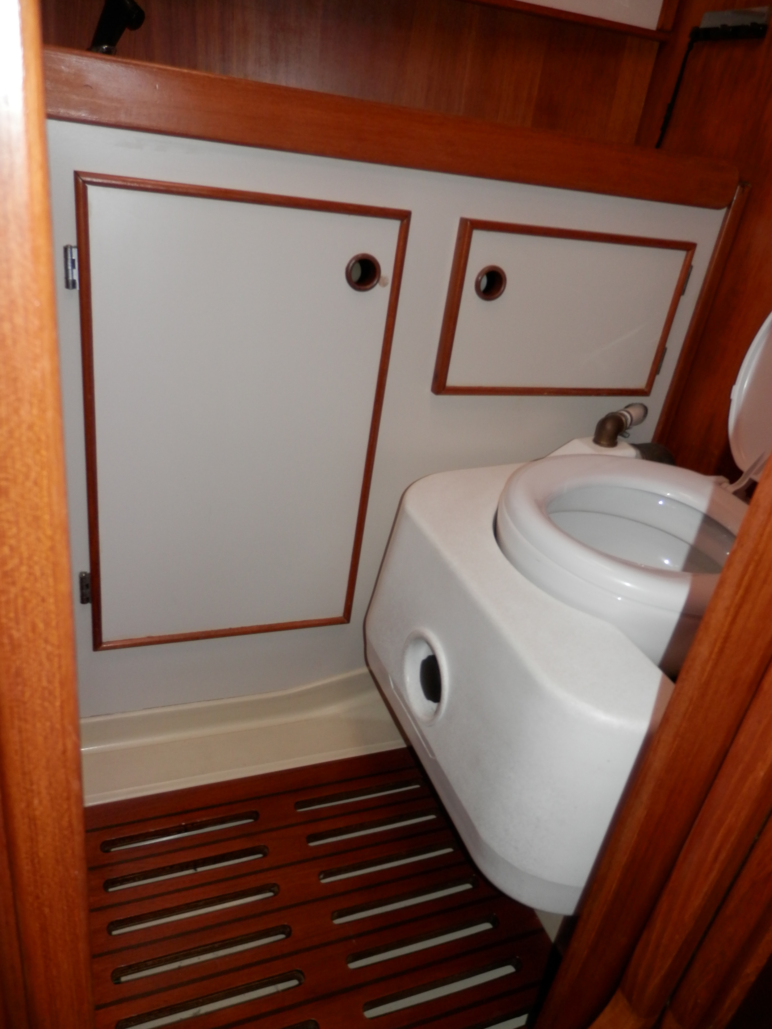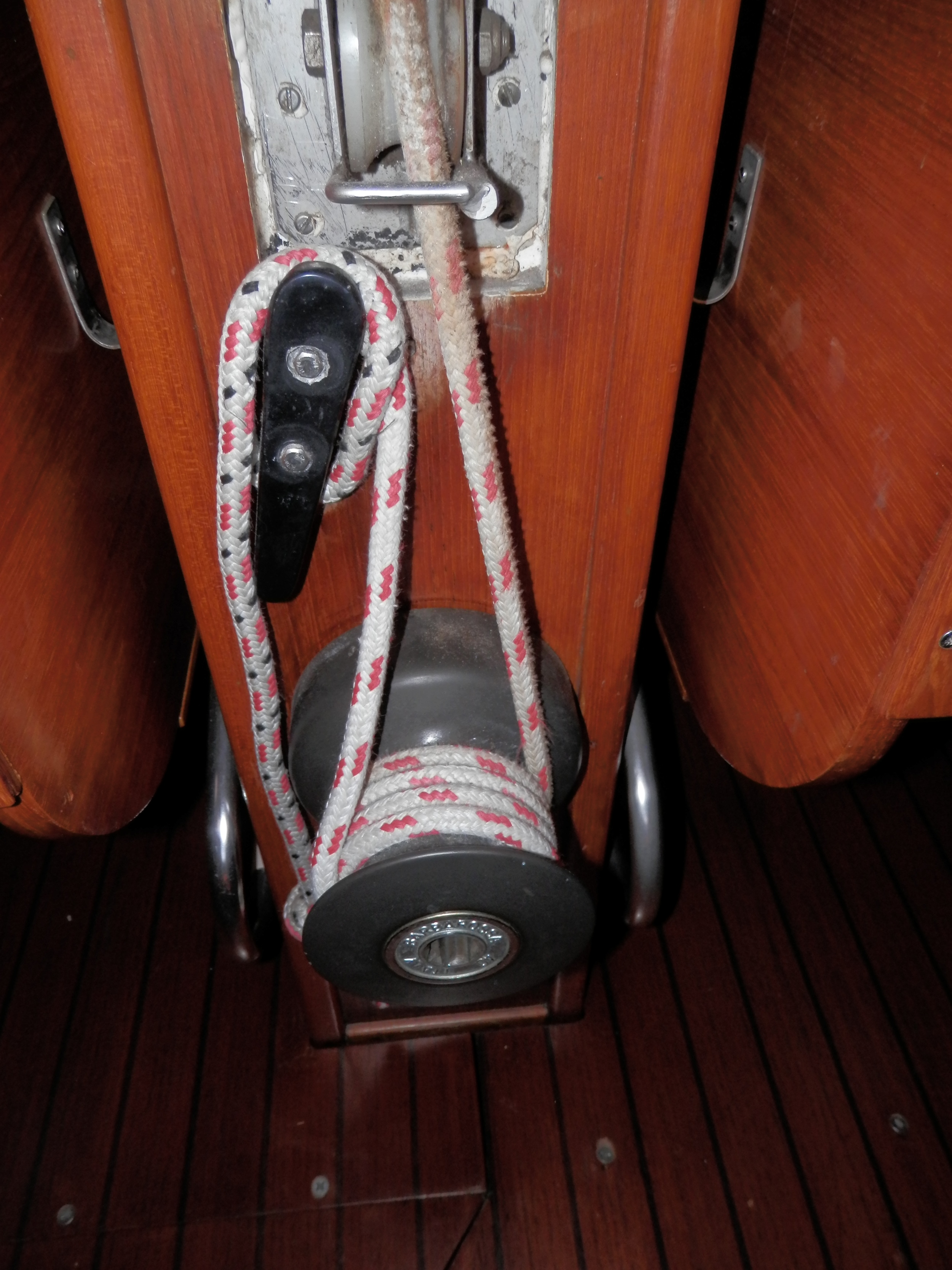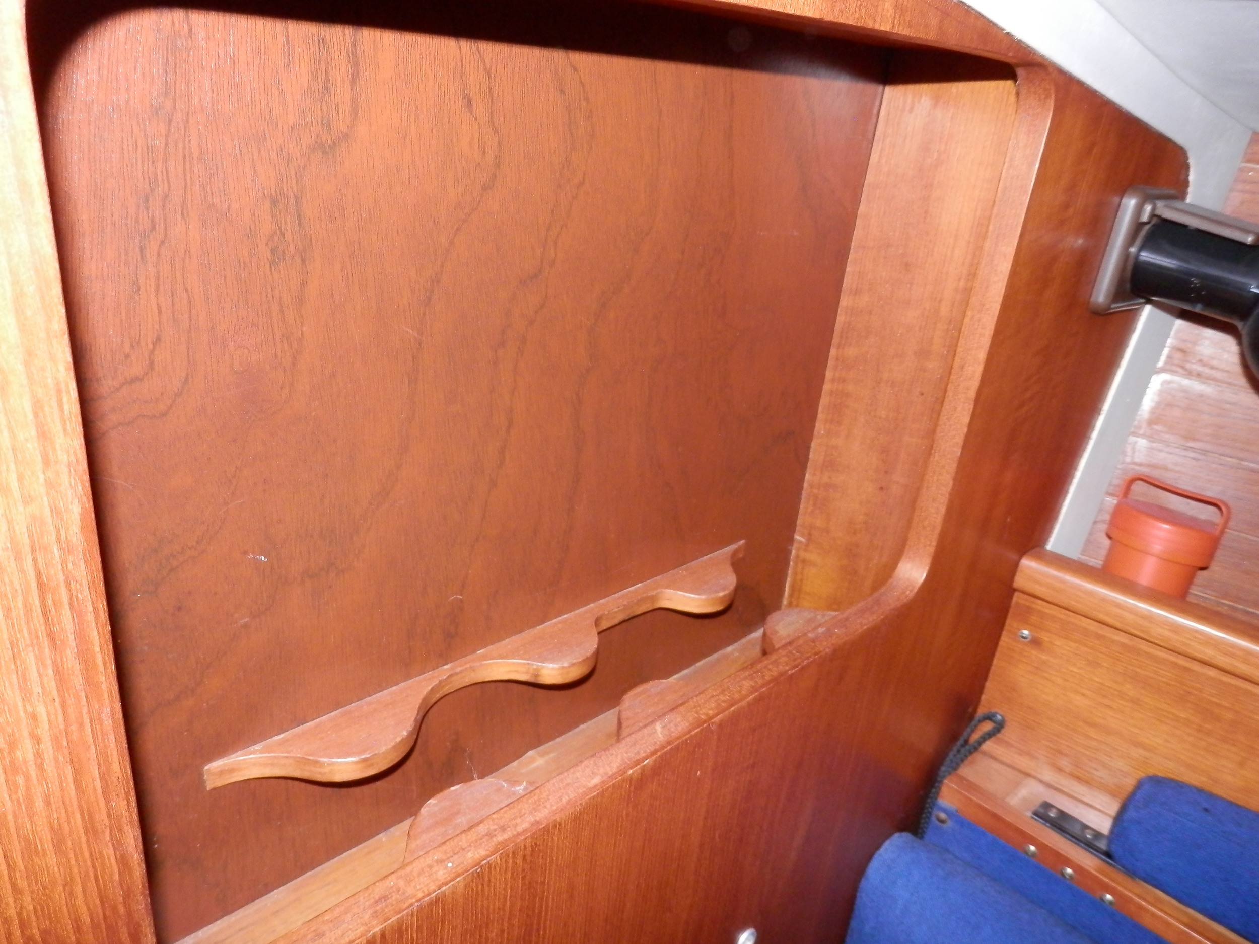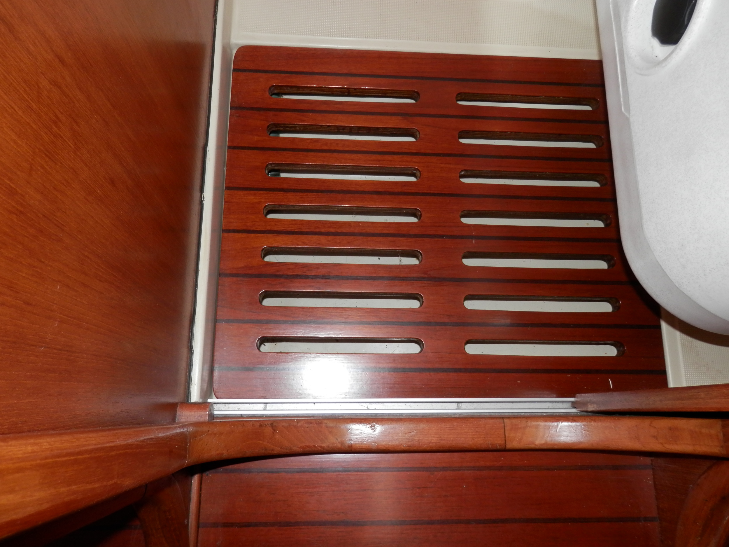 Het interieur is van gelakt teak en de boot biedt zowel veel leefruimte als opberg mogelijkheid. De salon heeft een zithoek met en uitklapbare tafel in het midden waarin de zwaard bediening is gemonteerd. Aan bakboord is een L-vormige keuken met bovenlader koeling en veel opbergmogelijkheid voor proviand. Naast de ingang stuurboord is de navigatie tafel. Er zijn 6 slaapplaatsen in de drie hutten en 4 extra slaapplaatsen in de salon. De natte cel is aan bakboordboord naast de ingang van het vooronder.